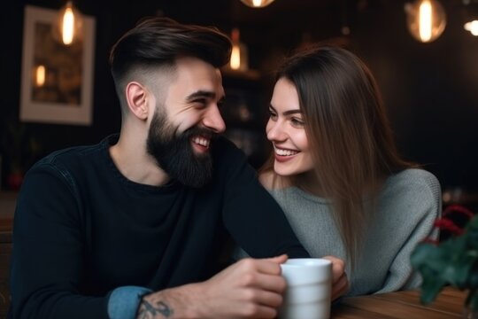 portrait of a happy young couple enjoying some lattes at their favourite coffee shop