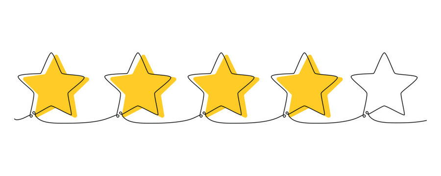 Rating stars one single hand drawing line. Vector stock illustration isolated on white background for design top review feedback web page bar, restaurant, hotel, vote. Editable stroke.