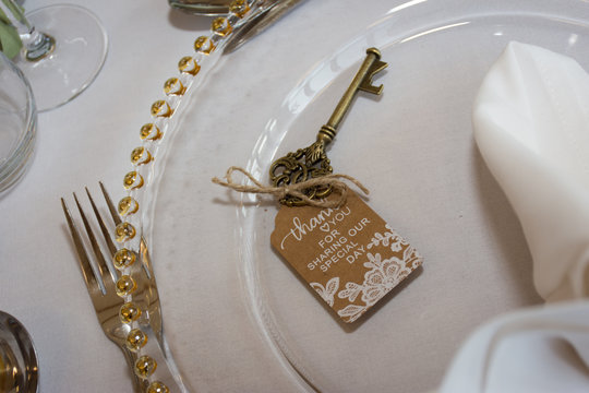 lock and key wedding guest wedding favor on table setting