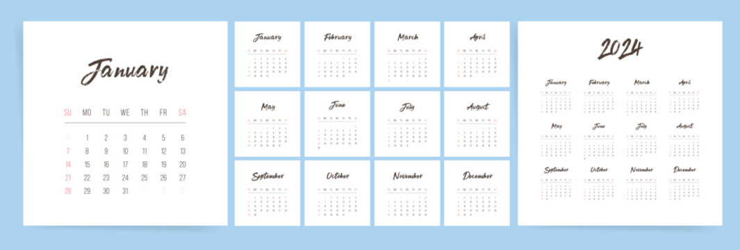 2024 Square Calendar Design. Minimal Template for Monthly and Quarterly Planning. Perfectly Suited for Business or Personal.