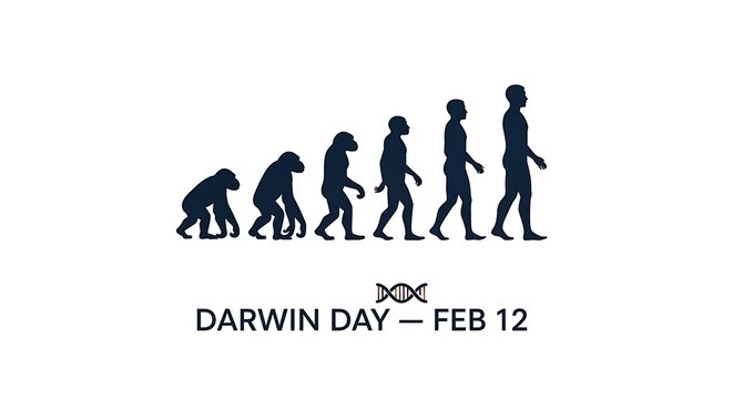 Iconic March of Progress illustration depicting human evolution from ape to modern man, celebrating Darwin Day on February 12.
