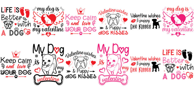 Creative Dog Valentine Day Typography, Phrases Pack Vector Illustration for Vouchers, Magazine, Book Cover