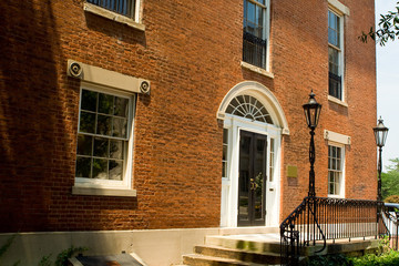 Stately Federal Style Townhouse with Symmetrical Windows and a Wrought Iron Gate