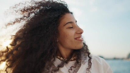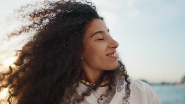 Woman enjoying golden hour feeling the sun a serene moment of relaxation