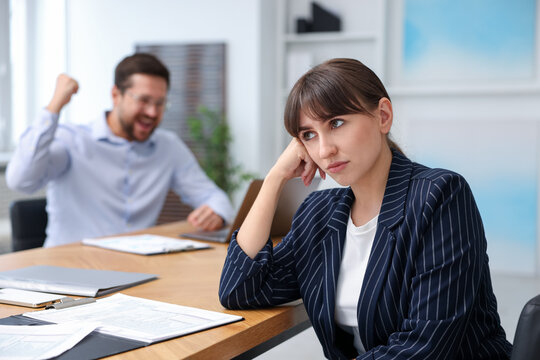 Woman winner looking laptop feeling happiness in office close up. Excited girl