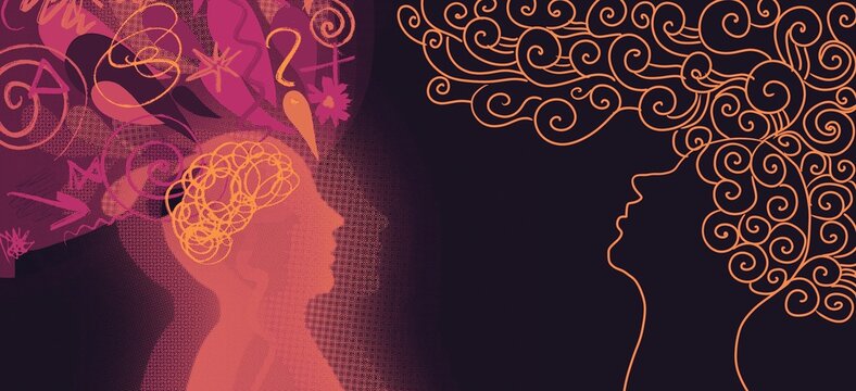 Saints Perpetua and Felicity Embracing, Courage and Faith, Biblical Illustration, Beige Background, Copyspace