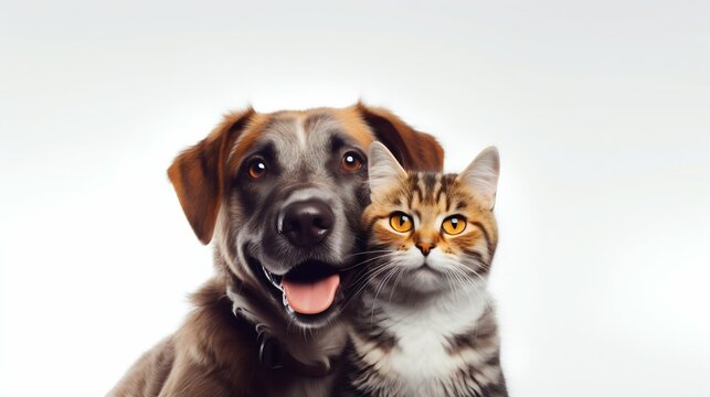 Animal Companionship: Happy Dog and Cat Together on White Background. Generative ai