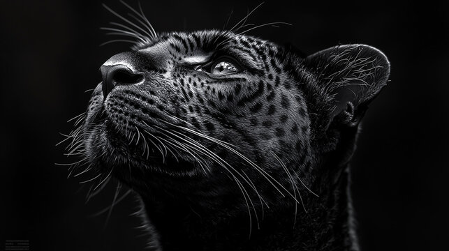 This artistic profile shot of a gray cat against a black background emphasizes the cat's striking features and captivating gaze, evoking a sense of mystery and beauty.