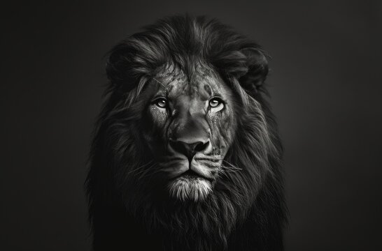 Majestic lion portrait in natural habitat at night, wildlife photography