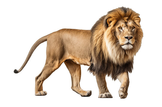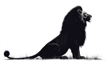 Black silhouette of a lion sitting on white background, isolated profile. Majestic wild animal, king of the jungle, powerful feline predator, calm and poised stance, symbolic, strength, nature