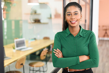 Portrait of a confident and successful african american business woman, financial investor, representative, executive, sales, corporate entrepreneur