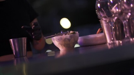 Barman skills showcased with cocktail creation