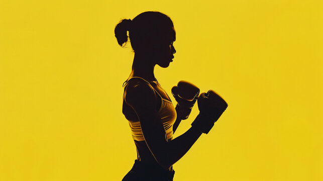 Black female boxer seeking fitness, focus, and motivation through exercise, in the gym, confidently using gloves, with determined endurance.