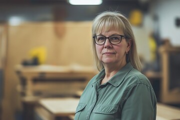 portrait of beautiful asian woman carpenter dealing with handicraft, woman has own business connected with making wooden furniture in workshop ,cinema tone