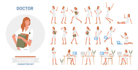 Asian woman character constructor. Cute business girl. Set of hands legs body and head positions for creating animation