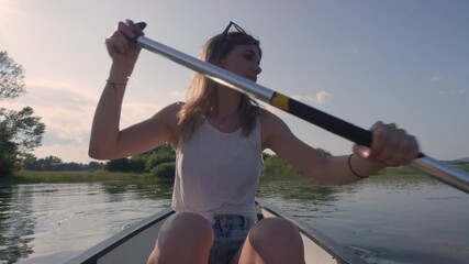 Early Morning Paddle: Female Kayaker Enjoys Calm River