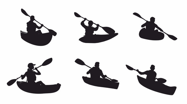 set of kayaking silhouette. Water sports, transport and adventure isolated on white background.