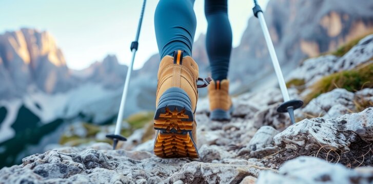 Determined female runner in athletic gear sprints across a grassy hillside, long exposure capturing sunset's warm glow, highlighting endurance, perseverance, and joy in cross-country running.
