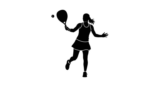 Dynamic silhouette of a female tennis player mid-swing, showcasing agility, power, and focus agepsnst a clean white backdrop