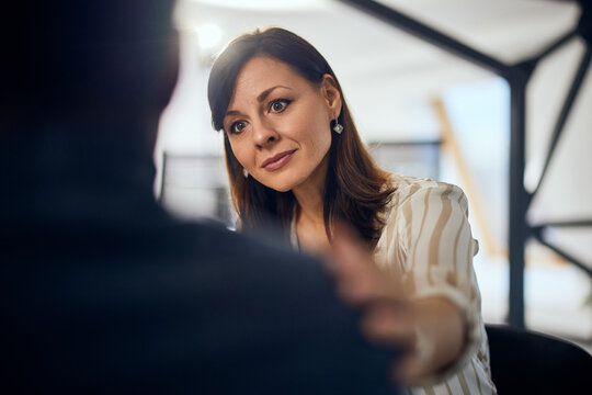 Female psychologyst therapy session with client indoors sitting girl looking at therapist