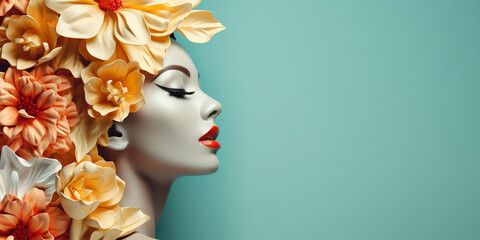 Happy Mothers Day Card. Floral papercut on teal background. Mom and flowers. Copy space for text.