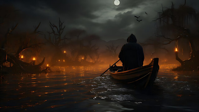 The ferryman of Hades called Charon or Kharon crossing the river of the underworld Styx (Generative AI)