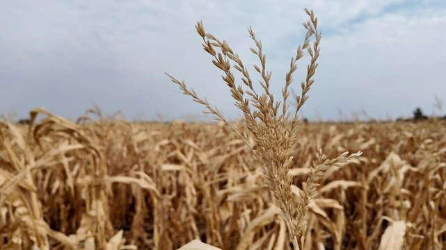 Barley fields flourish under a vibrant sunset in Ireland, with golden hues illuminating the landscape. The peaceful scene reflects the serenity of rural life Generative AI
