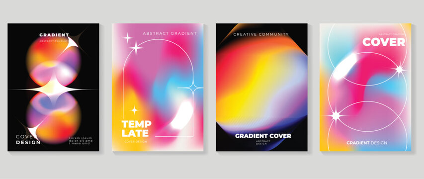 Abstract gradient poster background vector set. Minimalist style cover template with vibrant perspective 3d geometric prism shapes collection. Ideal design for social media, cover, banner, flyer.