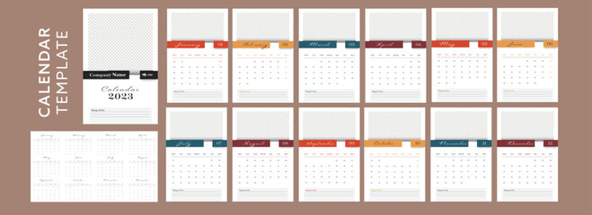 2023 Year, Annual Yearly Wall Calendar with Planner and Organiser in Two Different Formats with Photo or Image Placeholder.