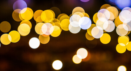 Macro close up of sparkling blue holiday ornament spheres against a blurred light bokeh background for festive decoration themes