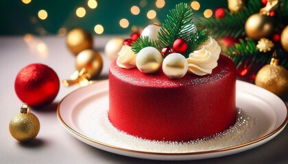 Beautifully decorated festive holiday cake with a shallow depth of field