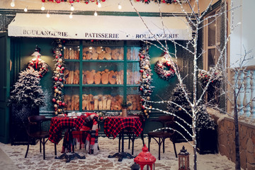 Charming Christmas bakery kitchen gingerbread cookies counter cinnamon sticks and holiday spices soft warm lights cozy festive atmosphere high detail shot