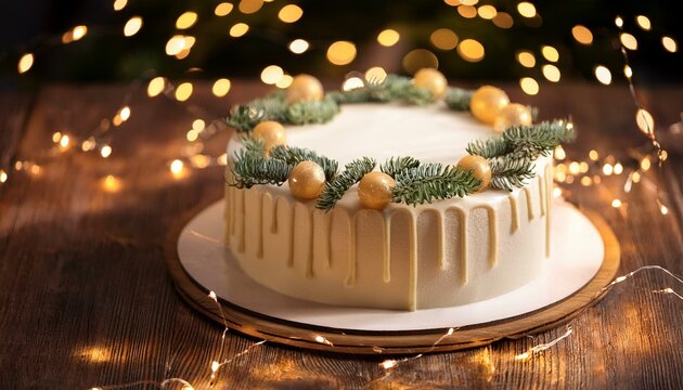 Beautifully decorated festive holiday cake with a shallow depth of field