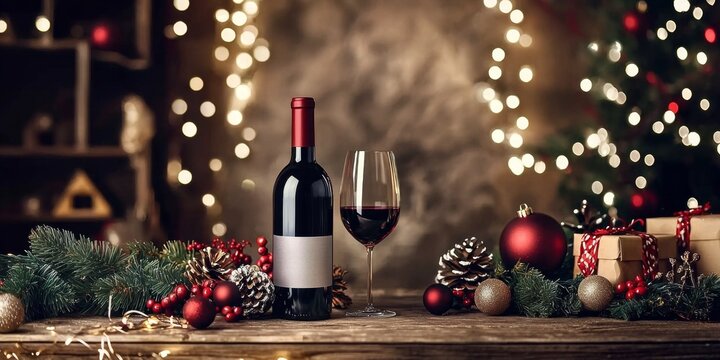 Festive Cranberries in Wooden Bowl with Bokeh Lights and Pine Sprigs