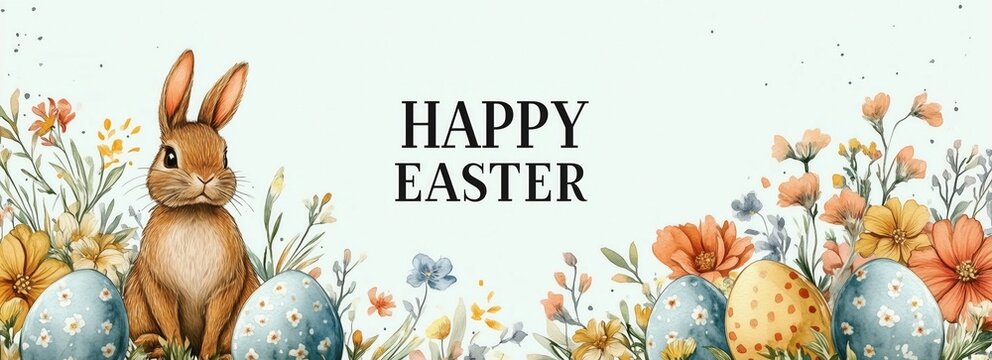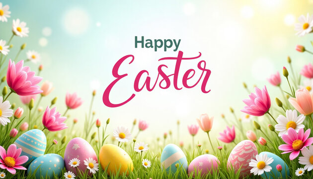 The bold "Happy Easter" text stands out against a light blue background, creating a warm and festive atmosphere ideal for Easter greetings, cards, or decorations.