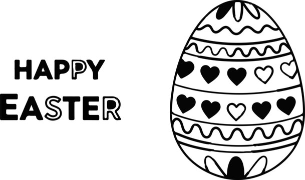 Festive text greeting beside a decorative Easter egg with heart patterns