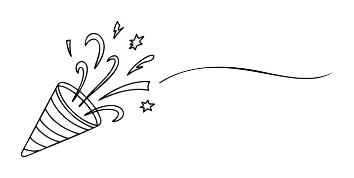 Exploding party popper with streamers and confetti for festive celebrations and surprise announcements, perfect for event marketing and congratulations graphics.
