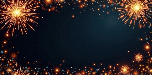 Golden firework burst border, ideal for festive dividers and holiday announcements , announcement, golden