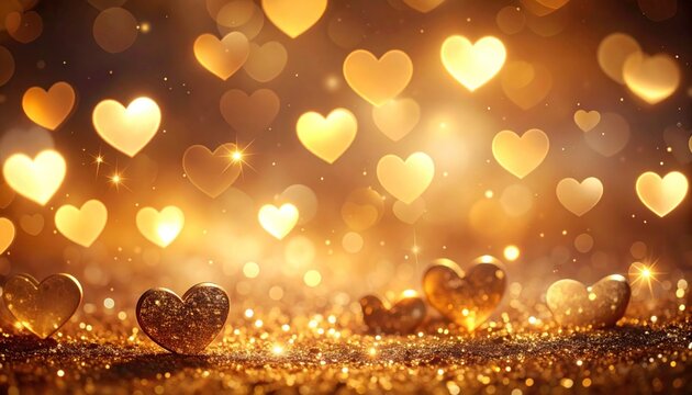 Golden Hearts Love Valentine Day Background.