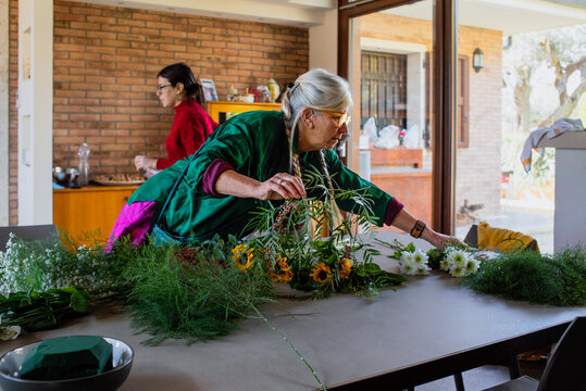 Two women enjoying warm beverages while sitting on a cozy sofa, wearing knitted sweaters, surrounded by festive decorations and a warm, inviting atmosphere for a joyful gathering