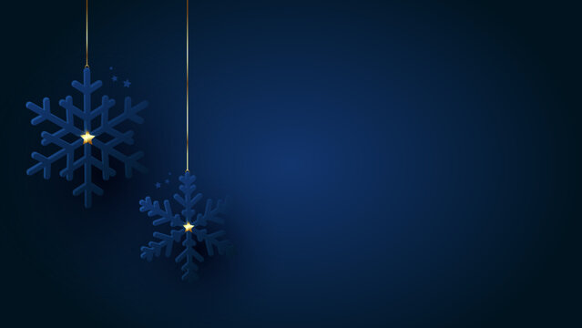 Dark blue Christmas decoration balls on dark background. Merry christmas and happy new year greeting card with copy space for text.