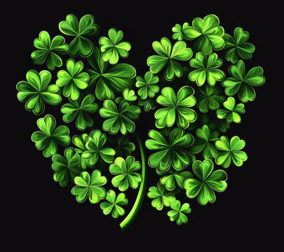 Vibrant Green Clover Heart Shaped St. Patricks Day Design