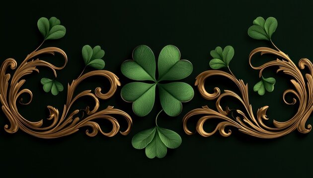Ornate Golden Filigree with Shamrock Clover Design Richness Sophistication St Patricks Day Adornment