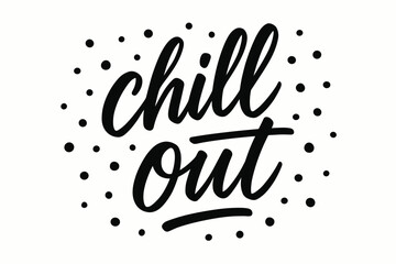 Chill modern hand lettering relaxed casual strokes surrounded by festive dots diagonal decorative composition clean white background vector look high contrast.
