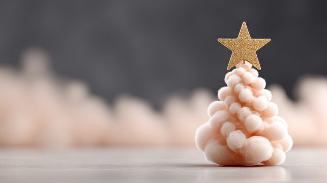 Decorative Christmas tree made of soft materials topped with a golden star, creating a festive atmosphere for holiday celebrations and decorations