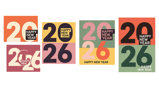 Colorful and modern 2026 new year card designs featuring bold typography and vibrant color palettes, perfect for festive greetings and invitations, conveying a sense of joy and celebration