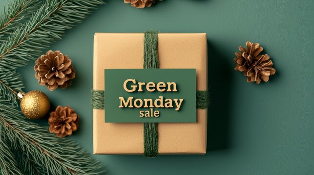 Boxing day sale announcement with gift boxes and pinecones
