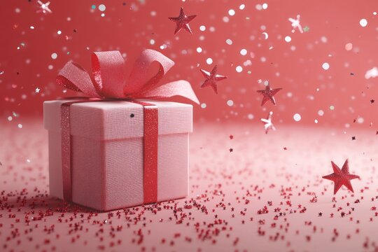festive christmas decorations include red podiums cone trees neon lights modern creative holiday templates banners posters
