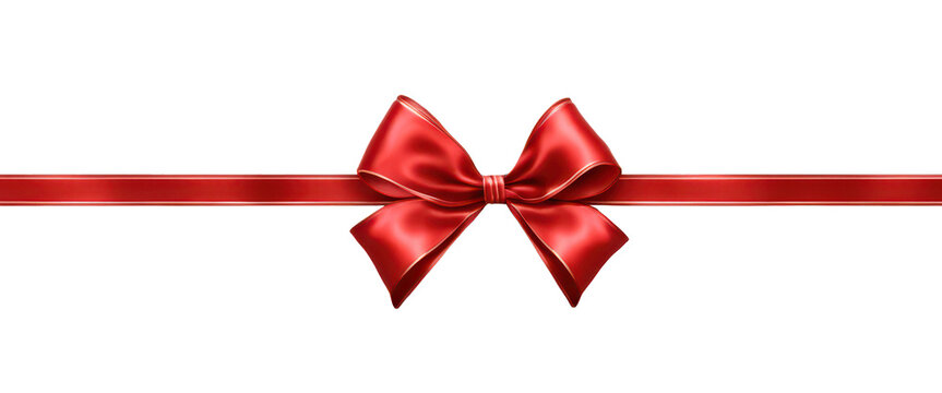 Elegant red ribbon with a tied bow, perfect for decoration on gifts, presents, or holiday packaging, isolated on transparent background