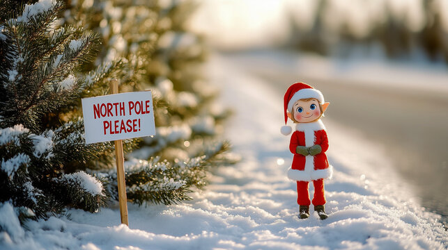 Red arrow sign a festive santa hat on a candy cane pole, pointing right, isolated on transparent background